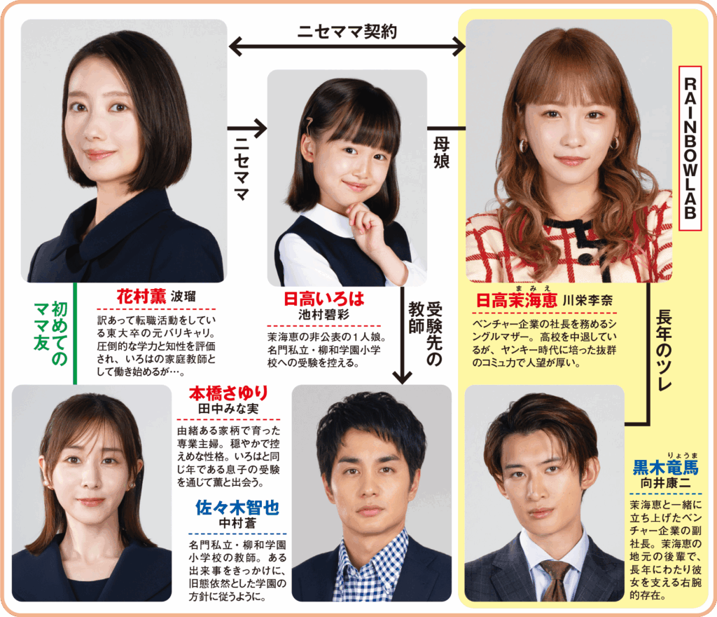 転職活動中の元バリキャリが、元ヤン社長のシングルマザーから「私の代わりにママとして小学校受験の面接を受けてほしい」と母親のなりすましを提案され、〝ニセママ契約〟を結ぶ!? 波瑠、川栄李奈と〝親子〟役を演じるのは、約400名のオーディションを勝ち抜いた池村碧彩。また本作は、バラエティー放送作家の経歴も持つ園村三による「TBS NEXT WRITERS CHALLENGE」(脚本家発掘プロジェクト)大賞受賞作。