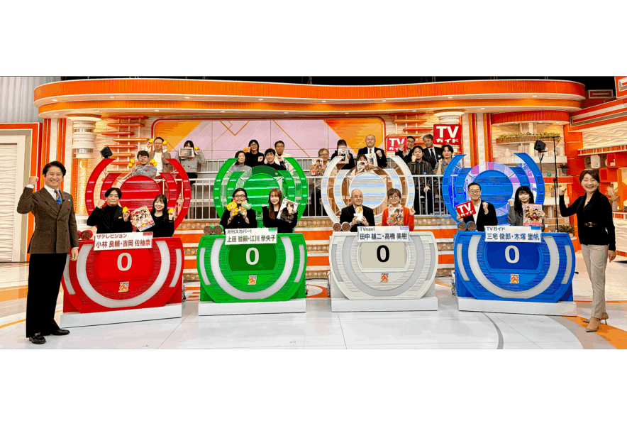 今回は特別大会として、日々著名人を取材しているテレビ情報誌の記者がBS10のスタジオに集結! 「ザテレビジョン」「月刊スカパー!」「TVnavi」「TVガイド」の4社がクイズに挑みました。これまで新聞記者などが出場する「マスコミ大会」はありましたが、テレビ情報誌の記者のみが集う大会は今回が初めて。芸能取材を専門とする記者たちならではの芸能クイズに加え、一般常識クイズにも挑戦しました。出場チームの中には、過去に司会の谷原章介へインタビュー取材を行った経験を持つ記者もおり、当時のエピソードが語られる場面も。応援席には各チームの同僚も駆けつけ、テレビ情報誌としてのプライドをかけた熱戦に会場は大盛況。果たして、栄えあるトップ賞を手にするのはどのチームなのでしょうか!? ぜひ「テレビ情報誌大会」をお楽しみください。